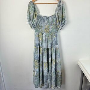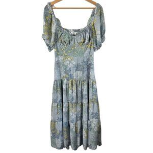 ASTR Soho Blue Floral Sweetheart Puff Sleeve Midi Dress Feminine Size Medium