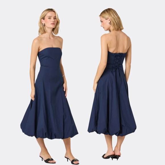 ASTR Strapless Lace Up Bubble Dress Navy Size S NWT $99 Midi Cocktail Party