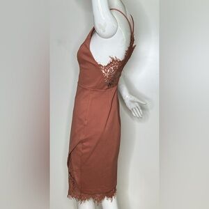 ASTR Sz S Body Con Stretch with Lace Racerback Coral Cedar Dress