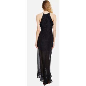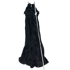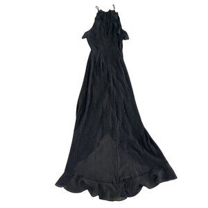 ASTR THE LABEL Arielle Ruffled Black Shimmer Slit Front Maxi Dress S NWT $120
