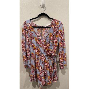 ASTR THE LABEL Blue Floral Side Wrap Romper. Size M