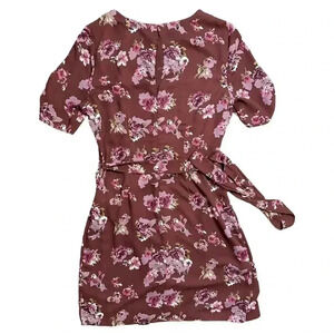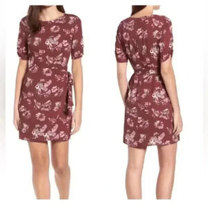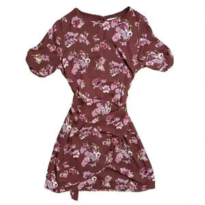 ASTR THE LABEL Burgundy Floral Dress Size Large Tie Wrap Mini Short Sleeve