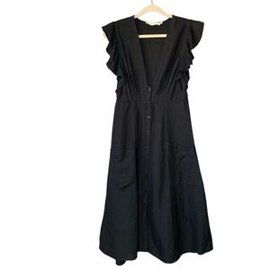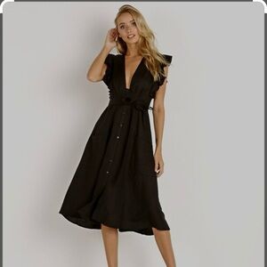 ASTR THE LABEL Carolina black linen blend button up midi V-neck dress. Size M