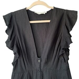 ASTR THE LABEL Carolina midi a-line button up linen blend plunge v-neck neckline ruffle cap sleeve dress with front waist pockets. Flaw-missing tie loops and tie but does not need, looks great without it! Tags: coastal, preppy, classic, minimalist, contemporary, capsule, neutral, transitional, summer, Fall. Size M