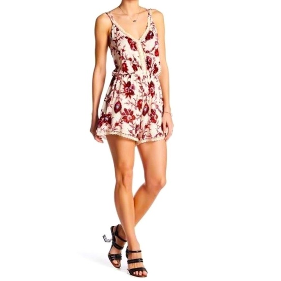 ASTR THE LABEL Floral Crochet Inset Romper