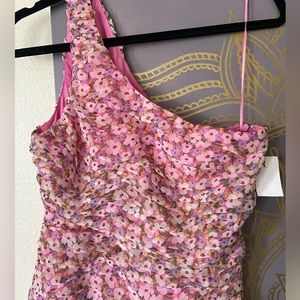 Asymmetrical, Fully lined, ruched throughout, one shoulder, GORGEOUS.