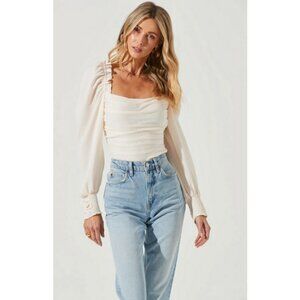 💕ASTR THE LABEL💕 Puff Sleeve Square Neck Top ~ Cream Medium XL NWT