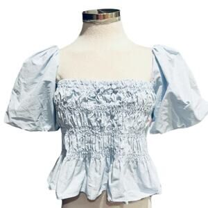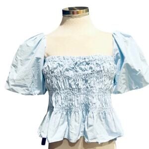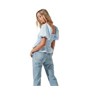 ASTR THE LABEL SAVINA BUBBLE SLEEVE TOP BLUE SIZE S NWOT