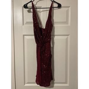 ASTR THE LABEL Sequin Twist Front Mini Dress - Wine
