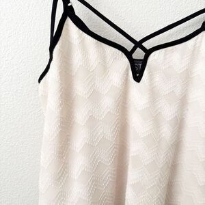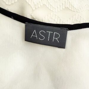 Beautiful dressy tank top from ASTR THE LABEL! Purchased at NORDSTROM, worn once. Size medium, but doesn't have a size tag (see measurements below). Beautiful ivory/cream with black details.