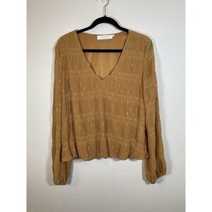 ASTR THE LABEL Top Womens XL Long Balloon Sleeve Gold Metallic Blouse Flowy
