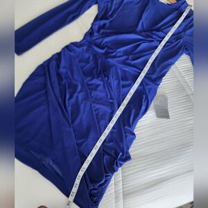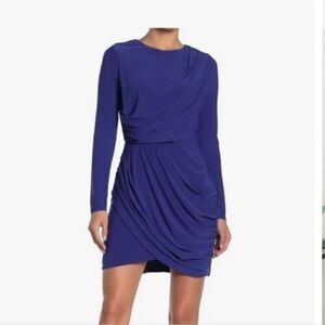 ASTR THE LABEL rushed sides twist drape front blue persian jewel dress