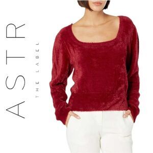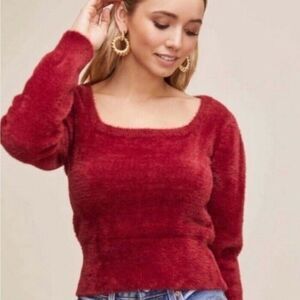 ASTR THE LABEL SQUARE NECK BURGUNDY WINE OX BLOOD FUZZY EYELASH SWEATER XL