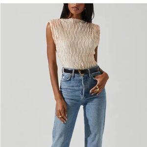 ASTR THE LABLE Red Mock neck Plisse sleeveless Top. Size Medium
