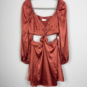 ASTR THE LABEL | NEW! Anamaria Copper Satin Cutout Minu Dress Women’s Size Large