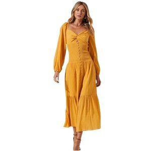 ASTR THE LABEL x Revolve Yellow Swiss Dot Twist Bust Long Sleeve Midi Dress