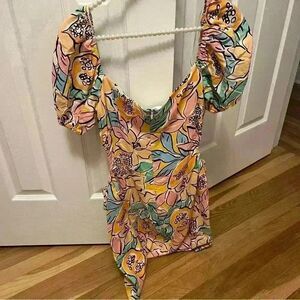 ASTR Talula Dress Tropical Papaya / Flower Dress with Cutouts