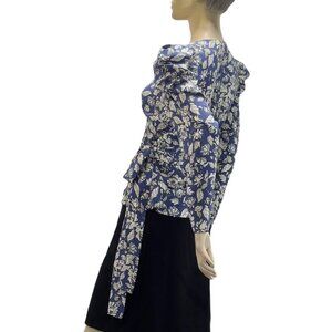 ASTR The LABEL Top Polyester Royal Blue Floral Attached Side Tie Wrap Puffed Gat