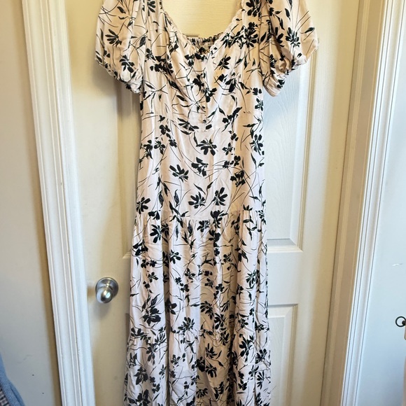 Chic maxi dress with floral pattern. Features puff sleeves. Ideal for stylish outings.