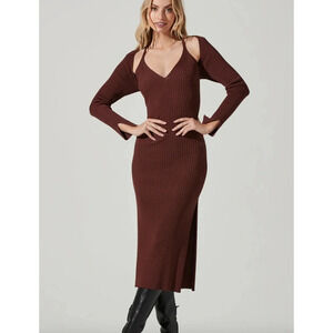 ASTR The Label Abella Cutout Long Sleeve Midi Dress Size Small