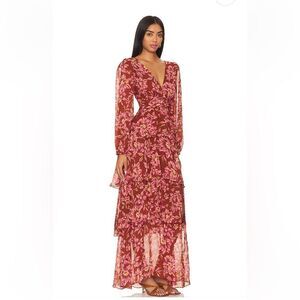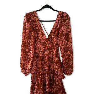 ASTR The Label Anora Dress Rust Floral print chiffon peasant maxi Revolve S