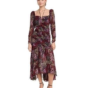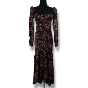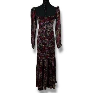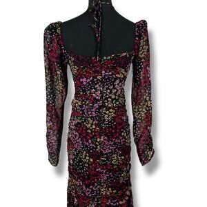 ASTR The Label Athena Midi Dress Floral Black Puff Sleeve Coquette Womens Sz XS