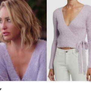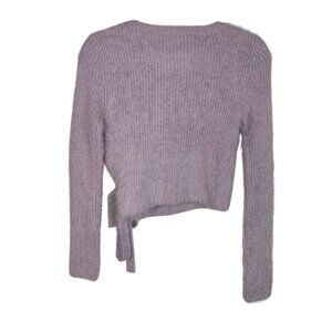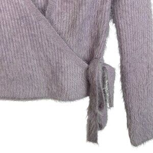 ASTR The Label Balletcore Fuzzy Knit Wrap Crop Sweater Lilac Women's Small