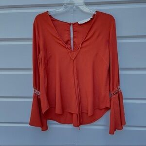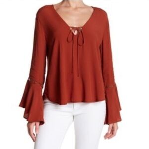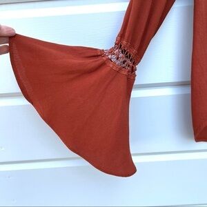 ASTR The Label Bell Sleeve Top Crochet Detail Size S Rust # AT11927