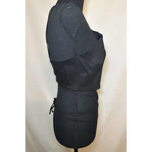 ASTR The Label Black Linen Blend Crop Halter Strappy Ties Women's LARGE NWT