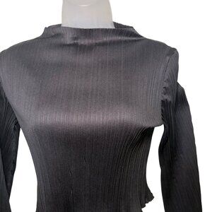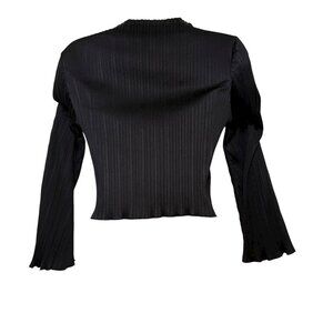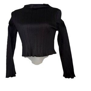 ASTR The Label Black Plissé Mock Neck Long Sleeve Crop Top XS