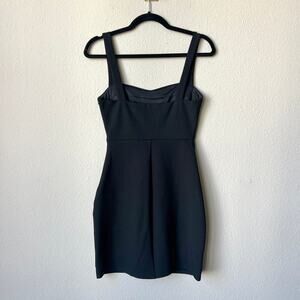 ASTR The Label little black bodycon mini dress. Small front peekaboo cut out design and silver beading detail at waistline and hem. Thick spaghetti straps. Hidden side zipper closure. Rayon nylon & spandex fabrication with minimal stretch. In excellent condition. Size small - 15.5" pit to pit; 12" waist; 24" length from pit.