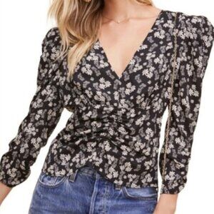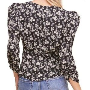 ASTR The Label Black & White Ditsy Floral Puff Shoulder Shirred Blouse. Size S.
