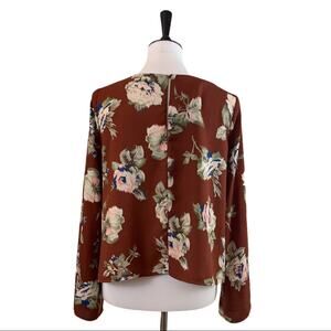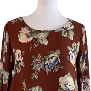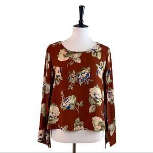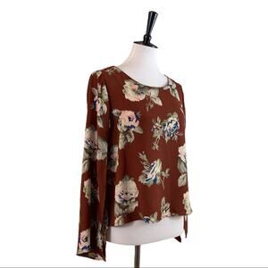 ASTR The Label Blouse Brown White Floral Bell Sleeve Scoop Top Women's Sz Small