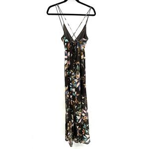 ASTR The Label Brown Floral Surplice Spaghetti Strap Maxi Dress Size Small S