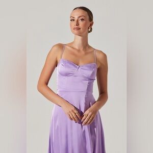 ASTR The Label Bustier Satin Midi Dress in Lavender Size Large NWOT!