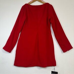 Chic ruby red dress with sleek long sleeves. Perfect for stylish outings.