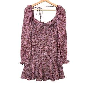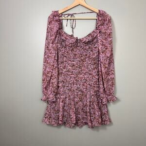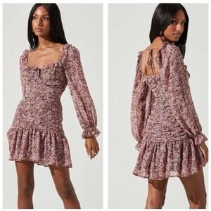 ASTR The Label Carmella Sweetheart Ruched Floral Chiffon Mini Dress Pink Small