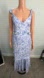 Open tie at back and exposed ribs, this is a perfect resort or fall wedding dress. About 50 inches long.