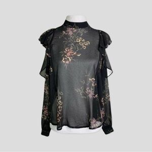 ASTR The Label Chantelle Sheer Cold-Shoulder Floral Blouse Top Size S