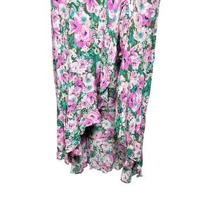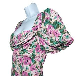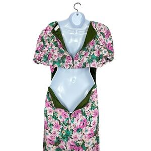 ASTR The Label Dayanara Dress Green Pink Floral Puff Sleeve Slit Maxi size Large