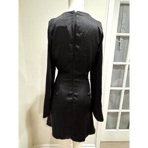ASTR The Label Dress Satin Long Sleeve Shoulder Cutout Draped Mini Black Dress