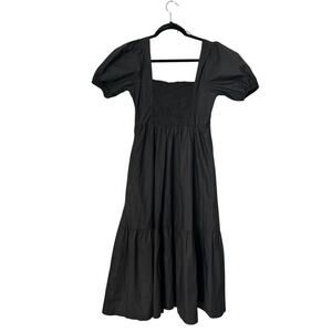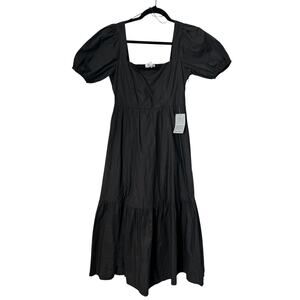 ASTR The Label Dress Womens Size Small Black Puff Sleeve Tiered Poplin Midi Boho