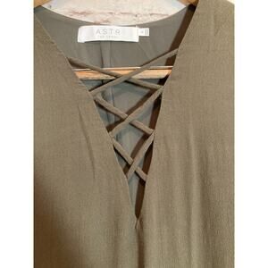 ASTR The Label Dress Womens Small Dark Olive Green Shift Cutout Boho Flowy Lined