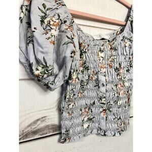 ASTR The Label EUC Size S Blue Floral Off The Shoulder Crop Blouse Top Smocked