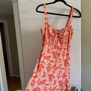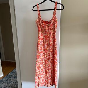ASTR The Label Elsie Floral Midi Dress Slit Medium Orange Pink Floral REVOLVE