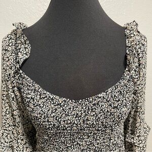 ASTR The Label Fairfield Black Multi Floral Long Sleeve Top Size Large
