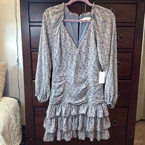 ASTR The Label Floral Blue Dress with Ruffle Hem Size L