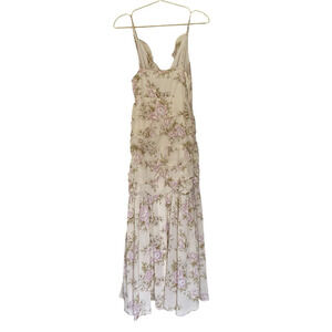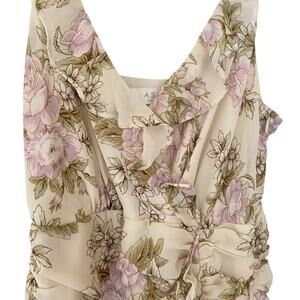 ASTR The Label Floral Maxi Dress Pink Green Ruched Ruffle Spaghetti Strap M