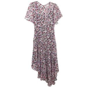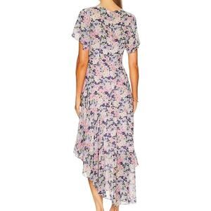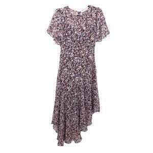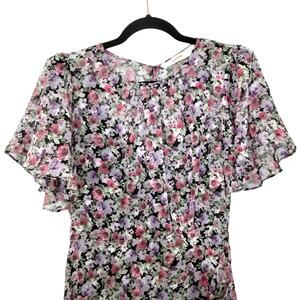 ASTR The Label Flutter Sleeve Maxi Dress Asymmetrical Hem Purple Floral M Y2K