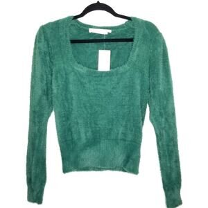 ASTR The Label Fuzzy Crop Sweater Green Size Large